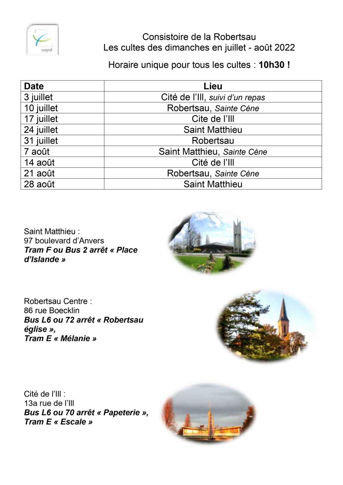 Cultes et prières à la paroisse protestante de la Cité de l’Ill : cliquer ici ou regardez les informations de la paroisse protestante de laCité de l’Ill